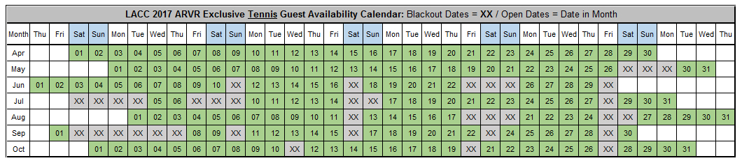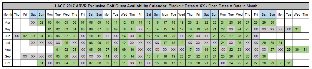 2017 available dates for enjoying LACC’s golf, tennis and dining: